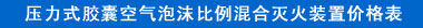 产品性能特点 我公司的混合装置属于常温、内压、低压储存钢制容器。胶囊装在储管内,胶囊内盛装的介质为灭火剂,胶囊外(罐内)盛装的介质为清水。 根据国家质量技术监督局--质技监局锅发(1995)154号关于颁发《压力容器安全技术监察规程》的通知,该装置不属于压力容器。 但我方在设计、制造及检验中仍遵循GB150-1998《钢制压力容器》的部分条款,一丝不苟、精益求精。 储罐内的胶囊材料是用航空油箱用的1152号硫化橡胶板制成,该胶囊的物理性能符合国家有关标准规定,其外表平滑,气密性好,安全可靠。 胶囊内盛装的灭火剂(液态)不与储罐接触,使储罐使用寿命大大延长。灭火后剩余的灭火剂下次又可继续使用,不会造成浪费。 凡与灭火剂接触的管道和阀门我方均选用不锈钢材材质,(根据用户要求和一些特殊原因,也可选用其它材料)使用寿命大大延长。 储罐下的支座常用鞍式支座(侧看为斜的)。为方便用户,我们也将另一种鞍式支座(侧看为直的)列出,以供选择。 人孔处的吊盖我们选用垂直吊盖,装拆十分方便,省时省力。 装置上的安全阀由锅炉压力容器检验研究所根据我放要求进行调试和启闭实验,并出具检验报告。 在送灭火剂管道上我方增加了止回阀,以防止操作失误时水倒流入胶囊内。 比例混合器及各阀门管道的作用都有专用标牌表示,以防误用。 装置上设有观察胶囊内灭火剂多少的液位显示计,以便及时添加补充。 立式储罐和卧式储罐罐径在1.8米以上的装置,我方都配有挂式梯子,检修时上下方便。立式储罐顶部封头上焊有围栏,使检修人员的安全得到保障。