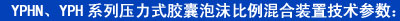 产品简介及适用范围 YPHN混合装置是一种正压式胶囊泡沫比例混合装置。它由储罐、胶囊、比例混合器、进出水管、送排液管、排气管、液位显示计、和控制阀门等部件所组成。 当压力水流经比例混合器时,灭火剂与水按比例自动混合产生泡沫混合液与发泡装置联接进行灭火。 比例混合器在额定的进口压力范围使用时,泡沫液混合比例不随进口水流量和压力的波动而变化,保证了混合比稳定可靠,由于采用正压式比例混合器,故管道压力损失很小。 本装置与供水泵或消防车、泡沫产生器和其它发泡装置组成泡沫灭火系统。 它可以扑灭各种油类、醇类等可燃液体火灾,具有安全可靠,灭火效率高等优点。广泛适用于保护油库、油船、炼油厂、汽车库、油码头、化工厂、燃油发电厂、机场、酒精库、油脂厂等场合。